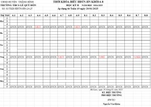 Thời khóa biểu (Áp dụng từ tuần 20 ngày 03.02.2025) Posted on 05/02/2025 by Trường THCS Lê Quý Đôn Xem thêm: ĐỀ KIỂM TRA – KẾ HOẠCH KIỂM TRA HỌC KỲ II NĂM HỌC 2023 – 2024 Sơ đồ tổ chức PHÂN CÔNG LAO ĐỘNG HKI_AD TỪ 01.11.2024 Thời khóa biểu áp dụng từ 4.12.2023 THỜI KHÓA BIỂU ÁP DỤNG TỪ 01.10.2024 Bài viết cùng chủ đề: THỜI KHÓA BIỂU HỌC KỲ I_ÁP DỤNG TỪ 11.11.2024 PHÂN CÔNG LAO ĐỘNG HKI_AD TỪ 01.11.2024 THỜI KHÓA BIỂU KÌ 1 2024-2025 ÁP DỤNG TỪ 07.10.2024 THỜI KHÓA BIỂU ÁP DỤNG TỪ 01.10.2024 PHÂN CÔNG LAO ĐỘNG HK1_NĂM HỌC 2024 – 2025 THỜI KHÓA BIỂU_ÁP DỤNG TỪ NGÀY 5.09.2024 Thời khóa biểu áp dụng từ 4.12.2023 THỜI KHÓA BIỂU ÁP DỤNG TỪ 6/11/2023 ĐỀ KIỂM TRA CUỐI HỌC KỲ I_NĂM HỌC 2024-2025 HĐTN hướng nghiệp ” Kỹ năng lái xe an toàn”.